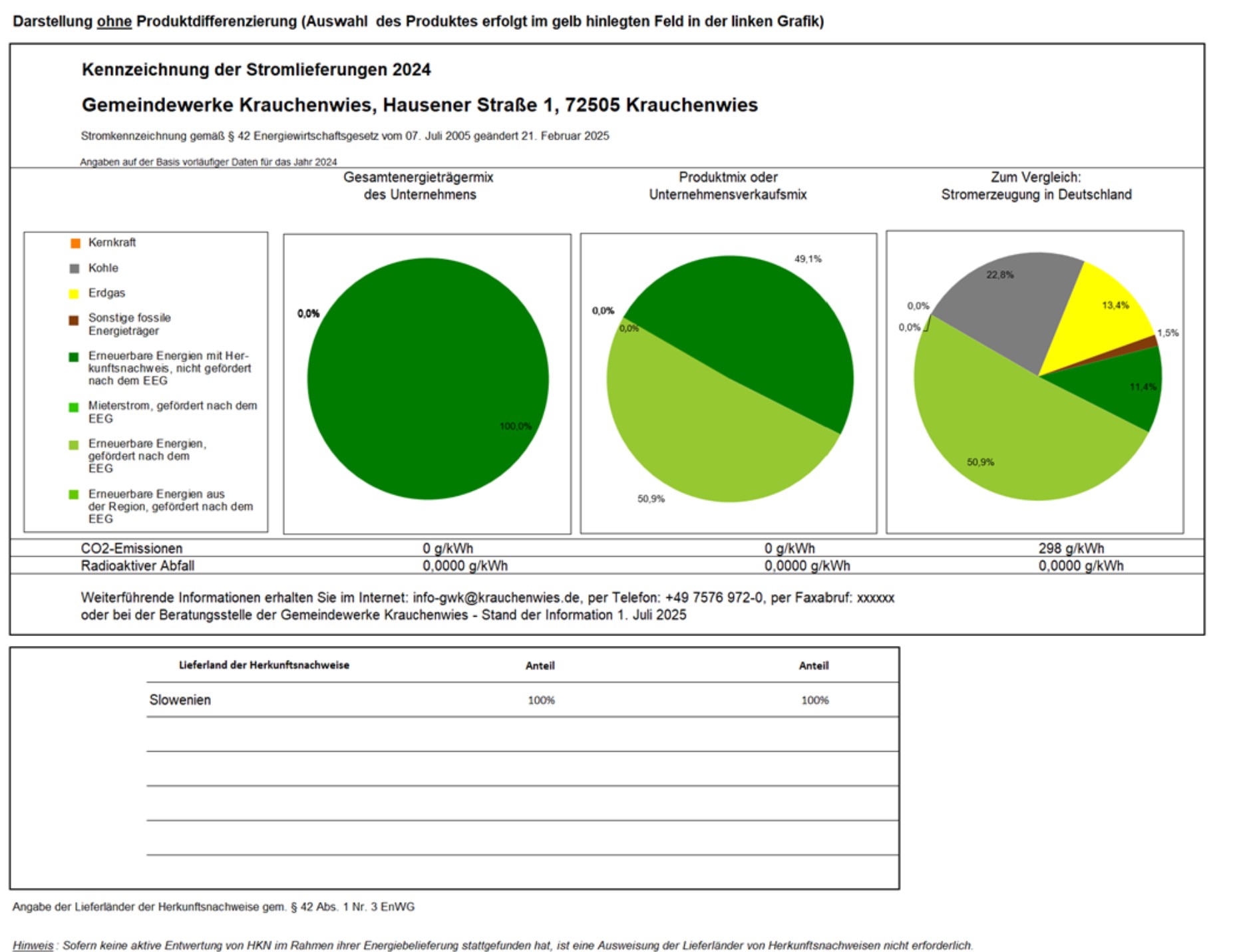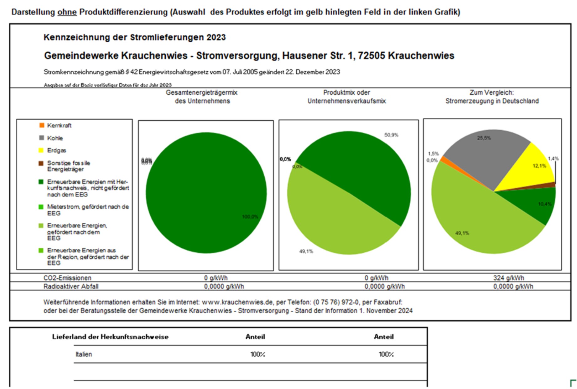 Kennzeichnung der Stromlieferung